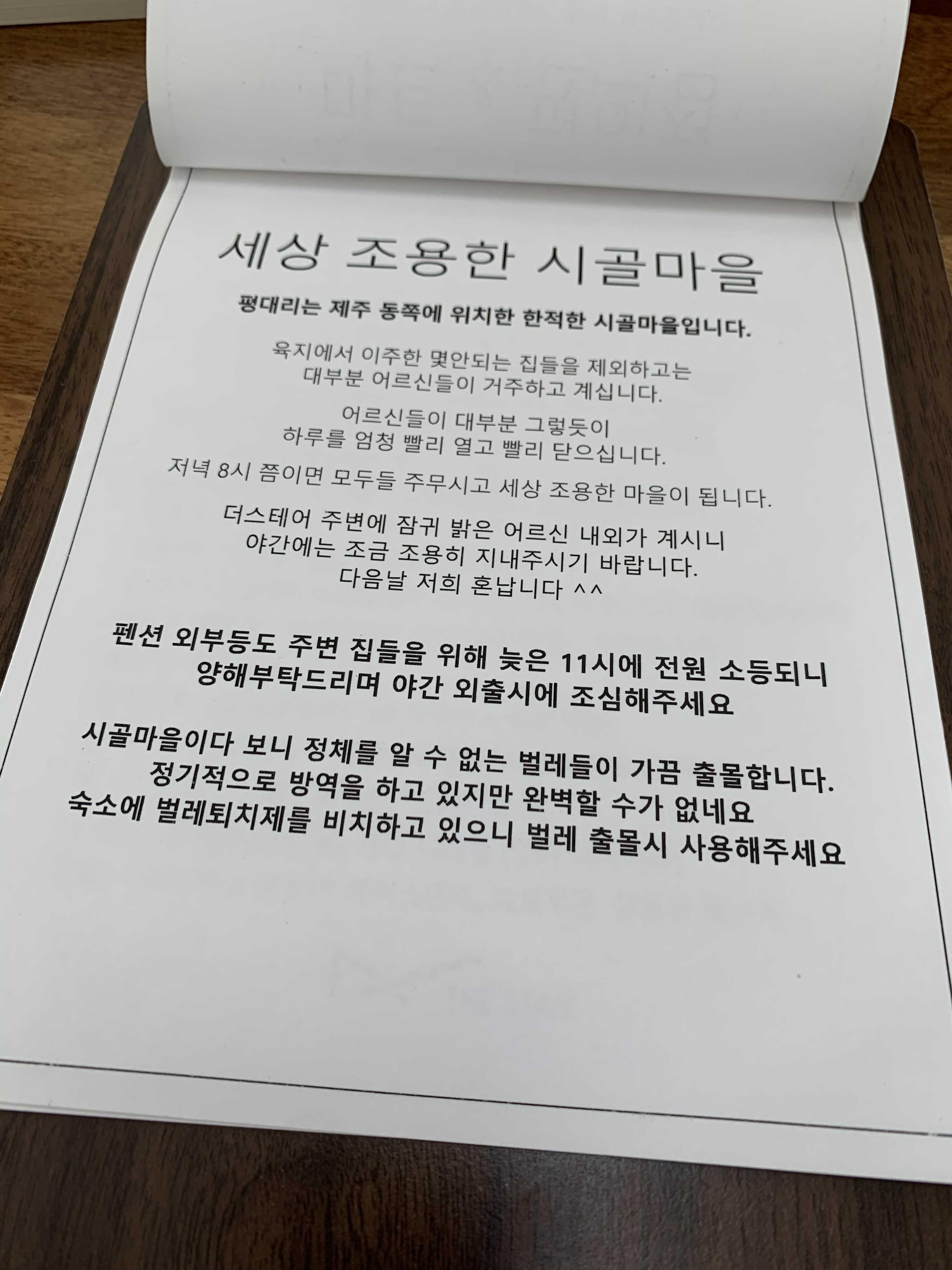 한적한 평대리 마을의 조용하고 깨끗한 숙소