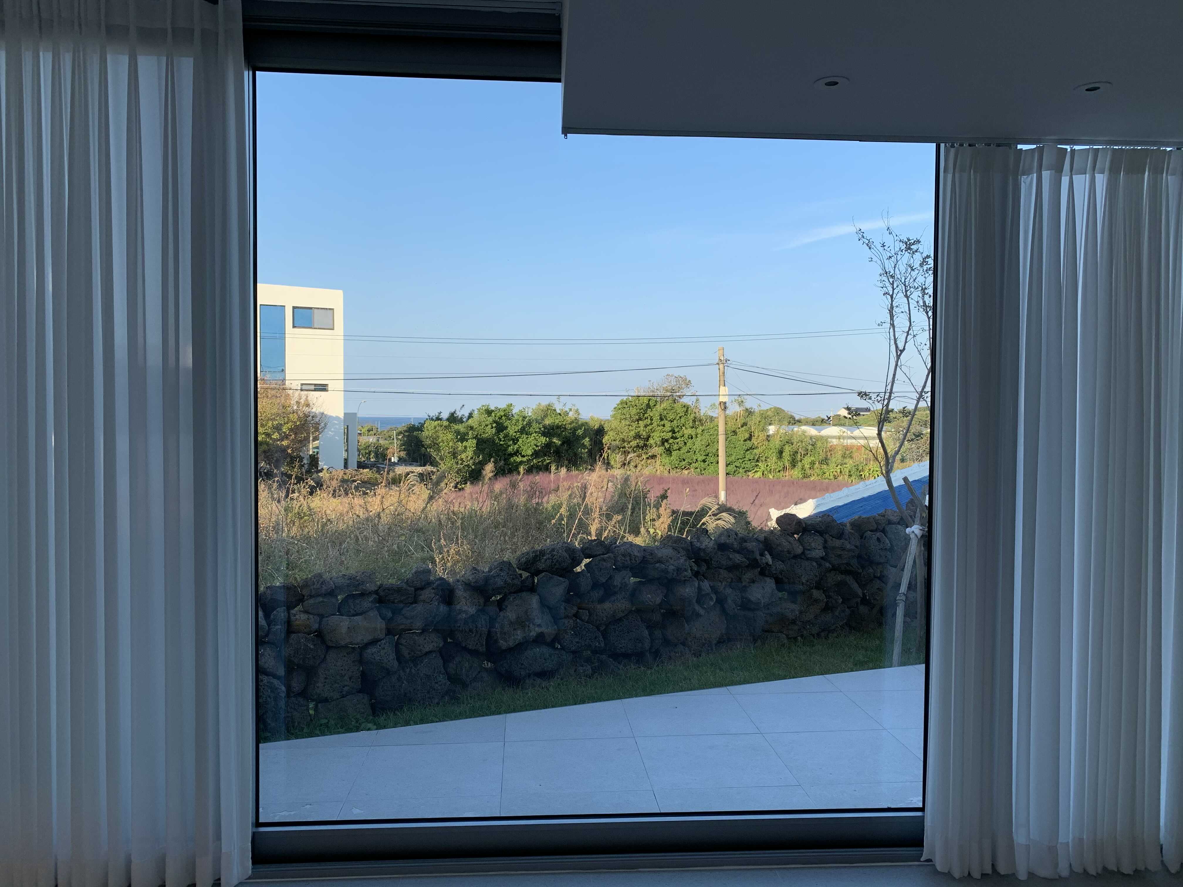 다만 아쉬운건 온통 통창으로 되어 있는데 밖에서도 숙소가 보이기 때문에 커튼을 칠 수 밖에 없다는 점이다.