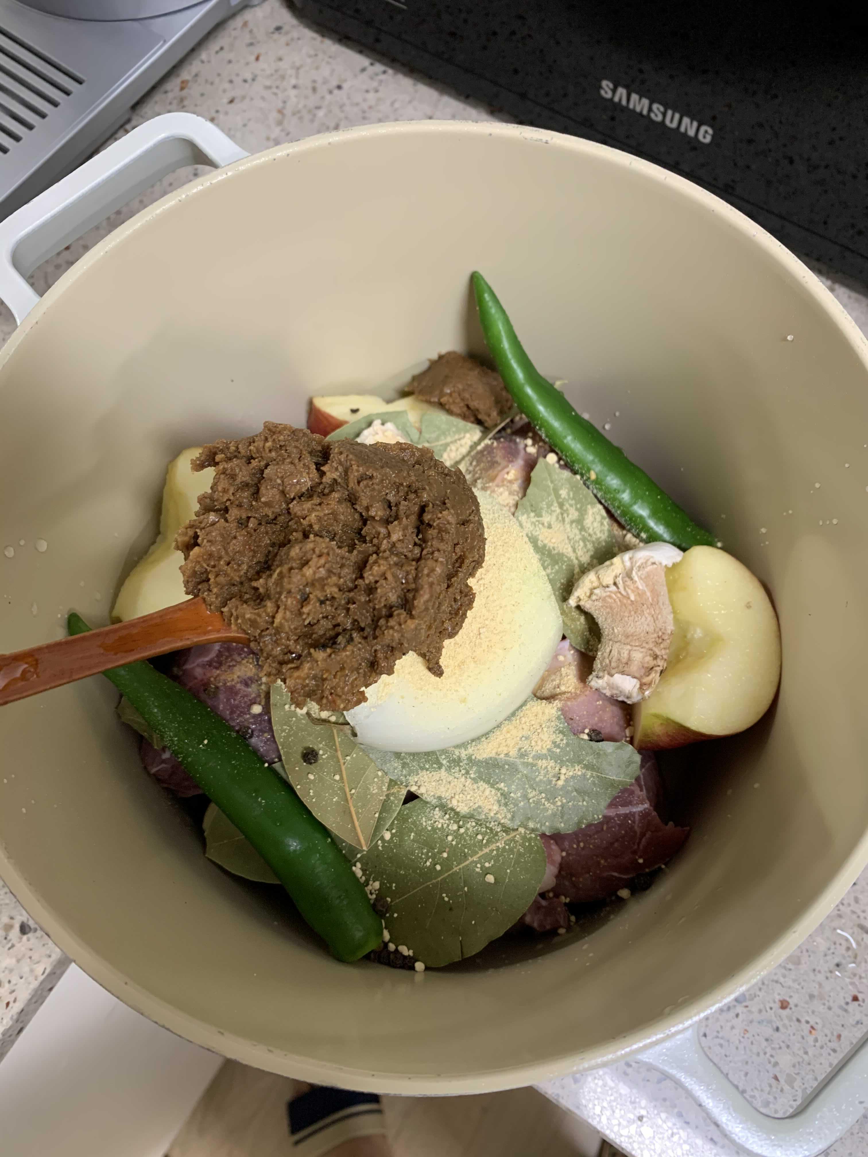 아에 고기 넣기전에 고기를 된장에 발라도 됐을 듯