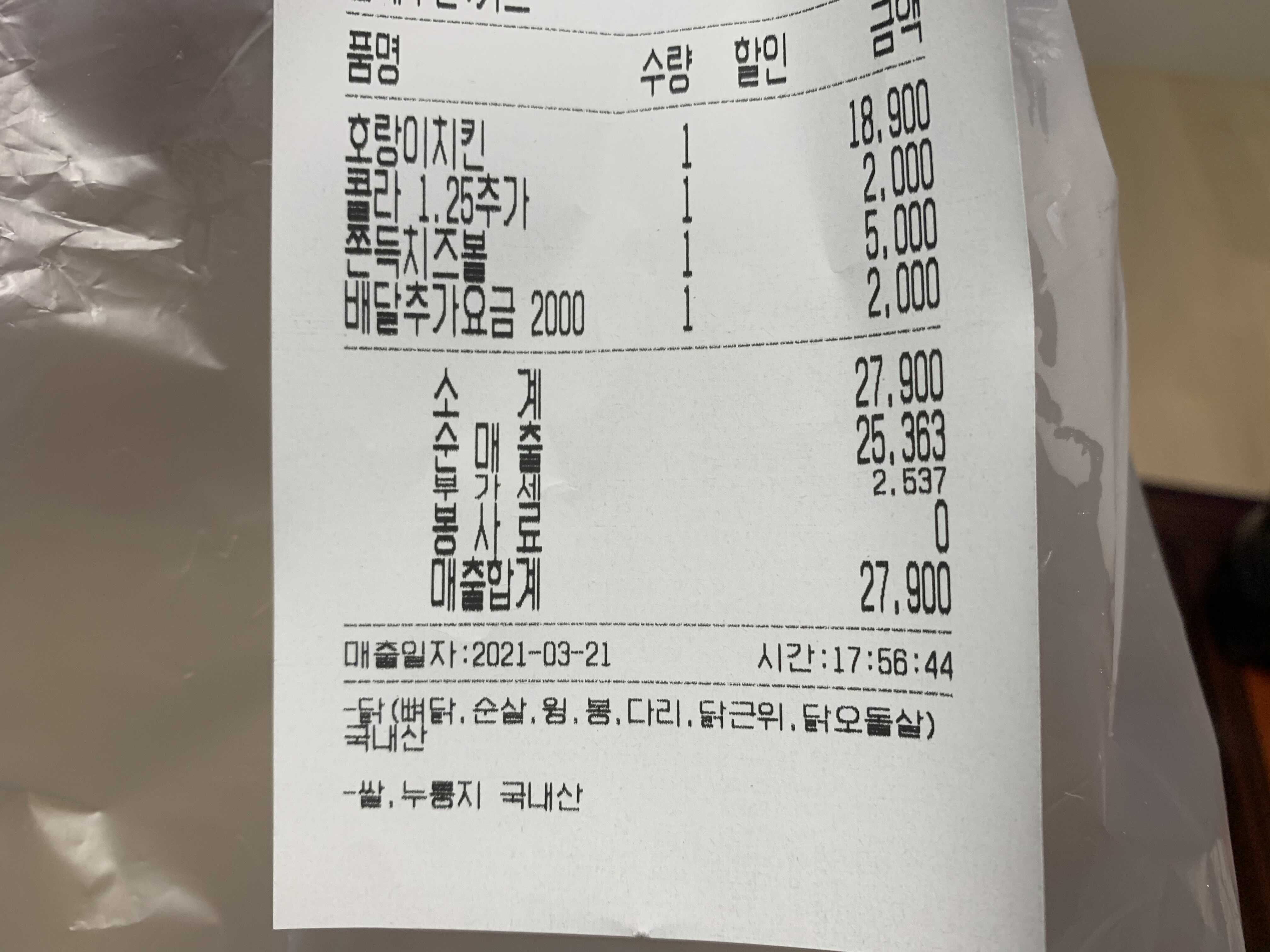 오랜만에 시켜먹은 치킨이지만 맛은 좀 아쉬웠다.