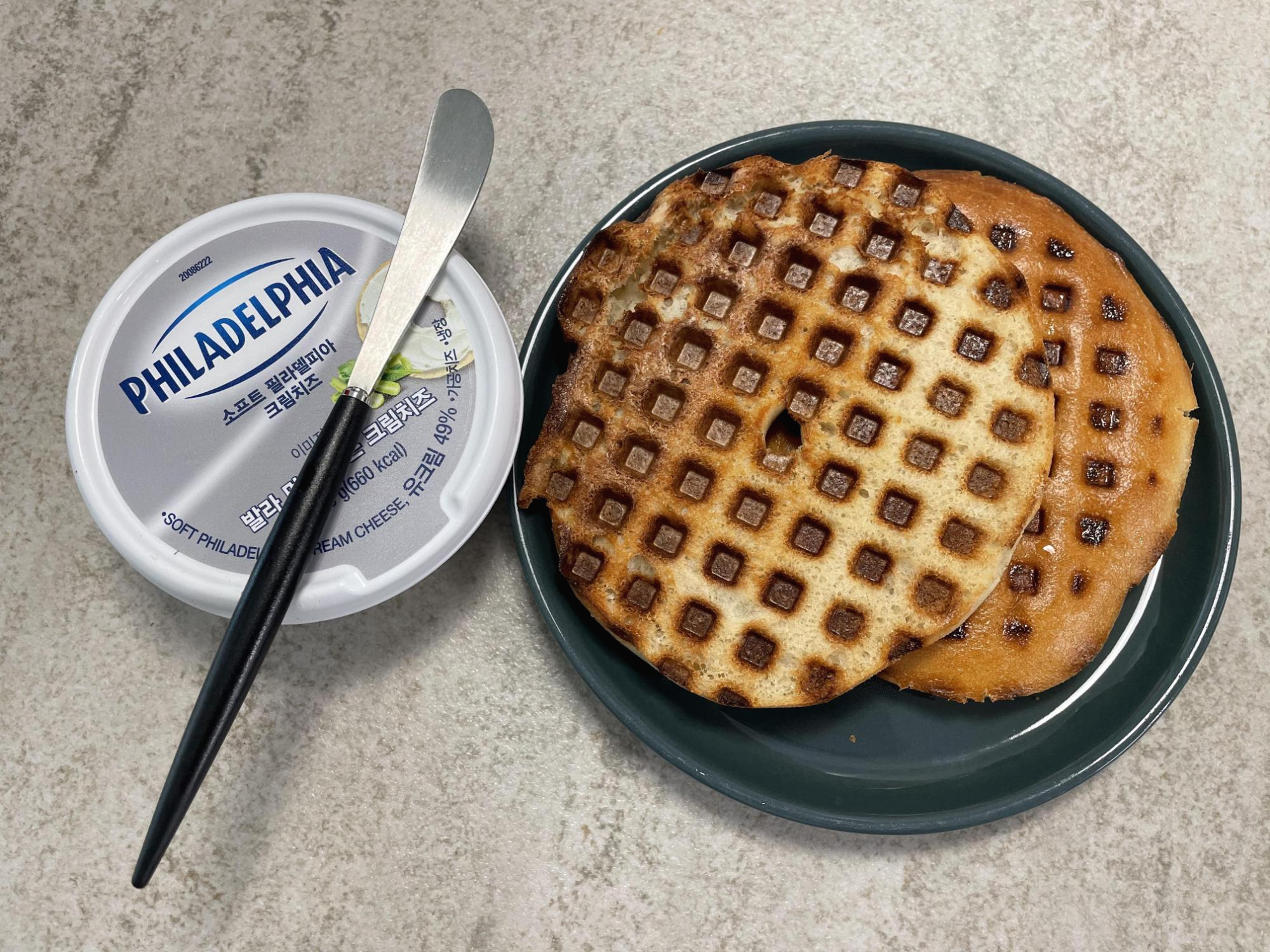 밀가루 + 와플팬은 뭘 해먹어도 성공적인거 같다.