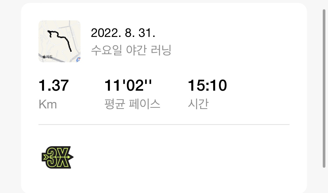| 미라클모닝 3KM 조깅 챌린지 3주차 (feat. Nike Run Club) (2) | 2022.09.13 |
