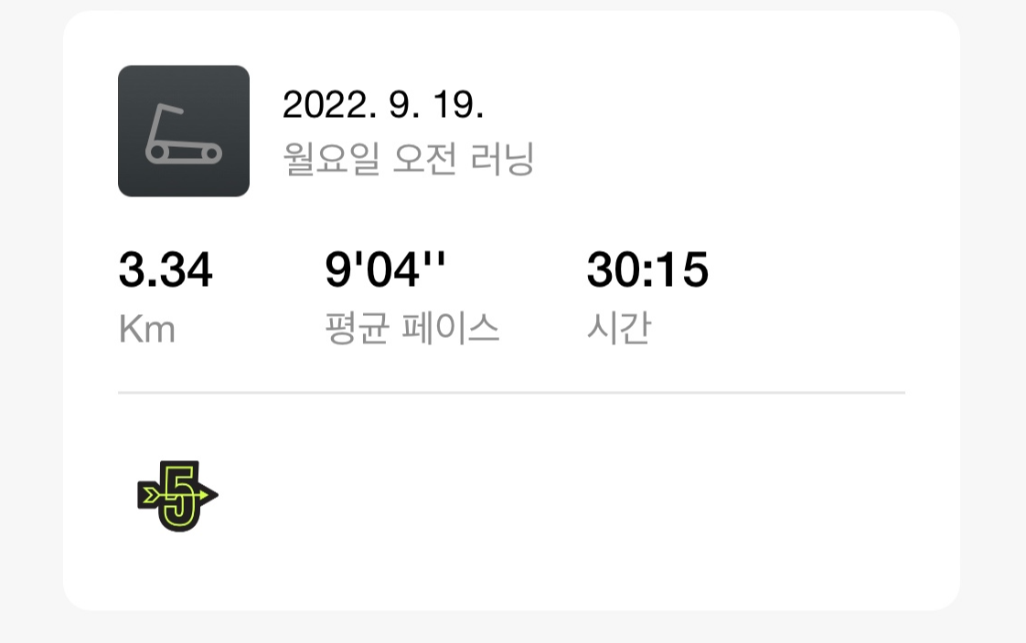 | 미라클모닝 3KM 조깅 챌린지 3주차 (feat. Nike Run Club) (2) | 2022.09.13 |