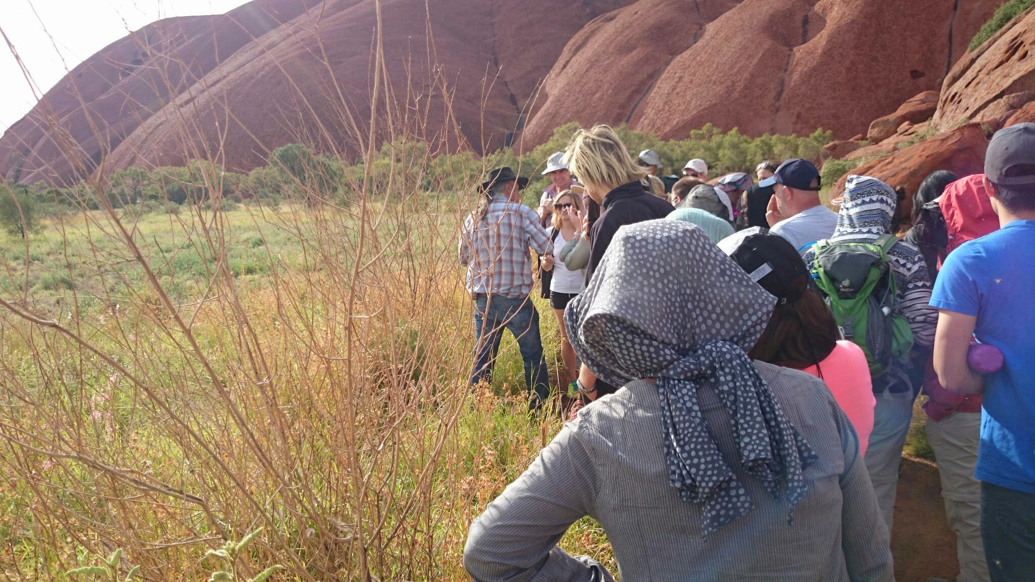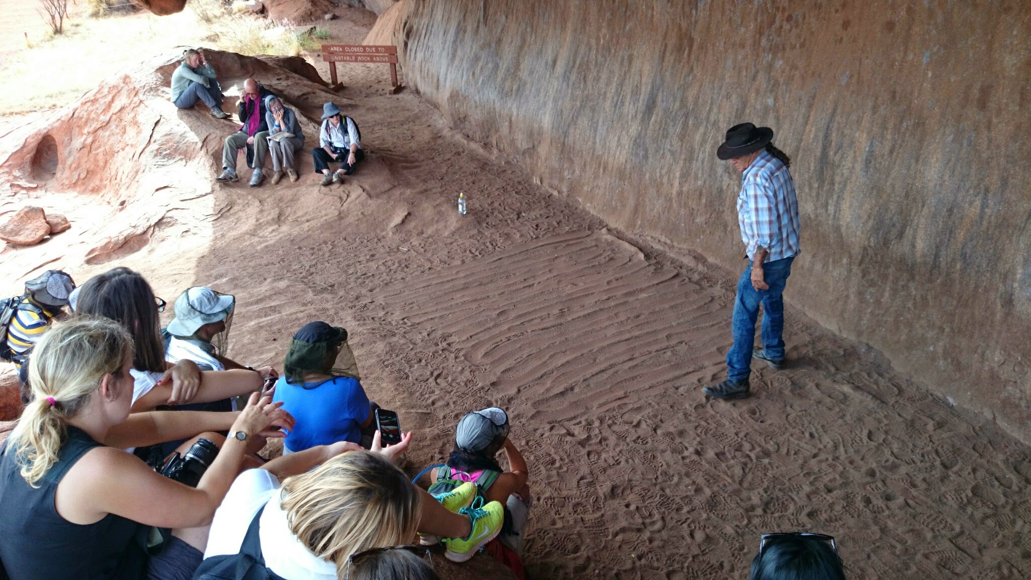 그렇게 신나게 달리고 보니 다른 일행들이 이미 만나기로 한 장소에서 기다리고 있었다. 우리도 자전거를 반납하고 일행과 합류했다. 이번엔 호주 원주민 어보리진이 리드해 울룰루 여기저기를 다니며 원주민들이 생각한 울룰루, 그들의 사상이나 문화, 예술까지 설명하면서 직접 가이드하는 시간이었다.
