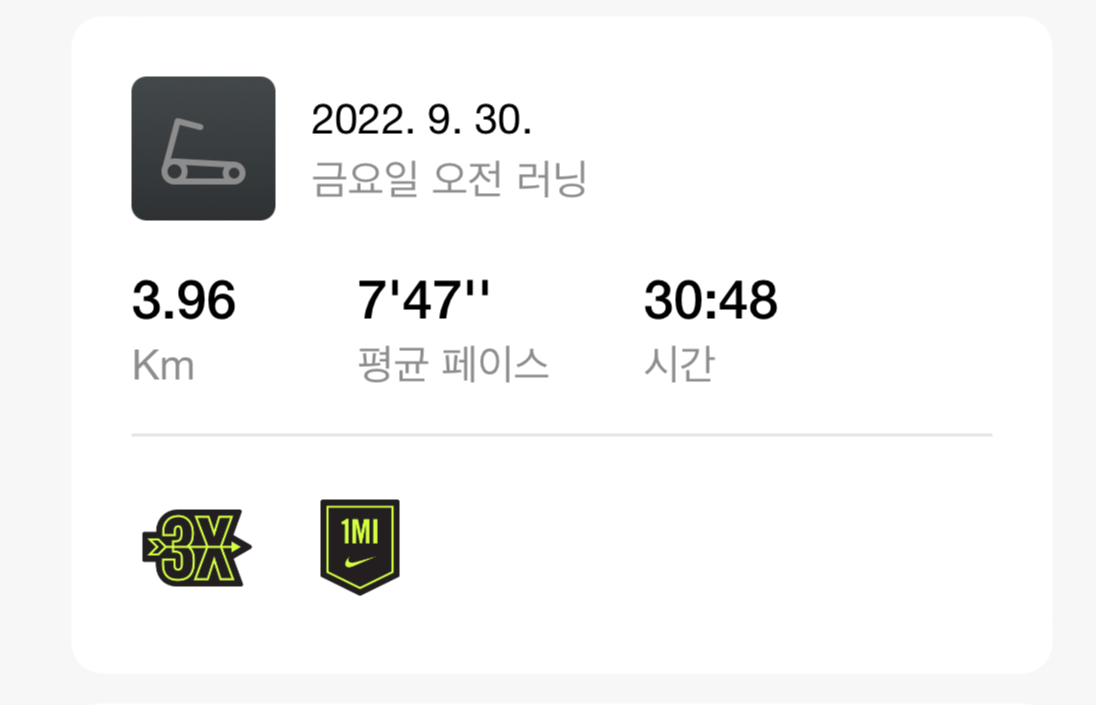 | 미라클모닝 3KM 조깅 챌린지 3주차 (feat. Nike Run Club) (2) | 2022.09.13 |
