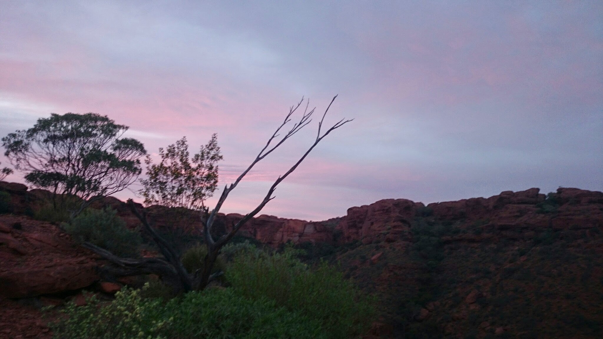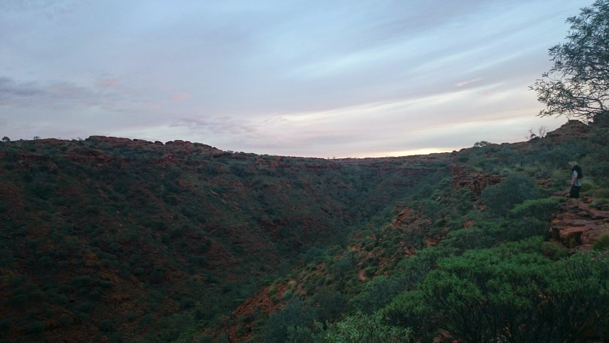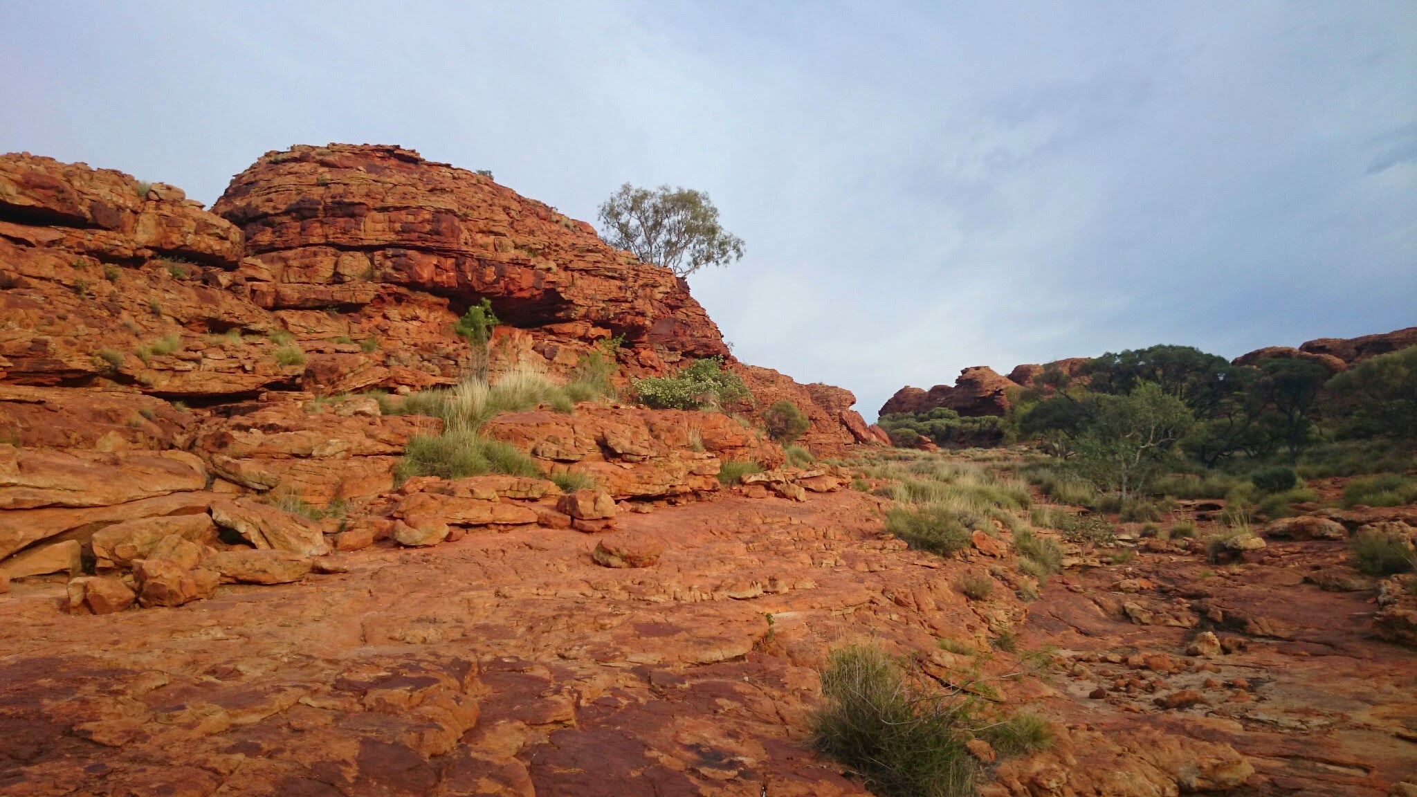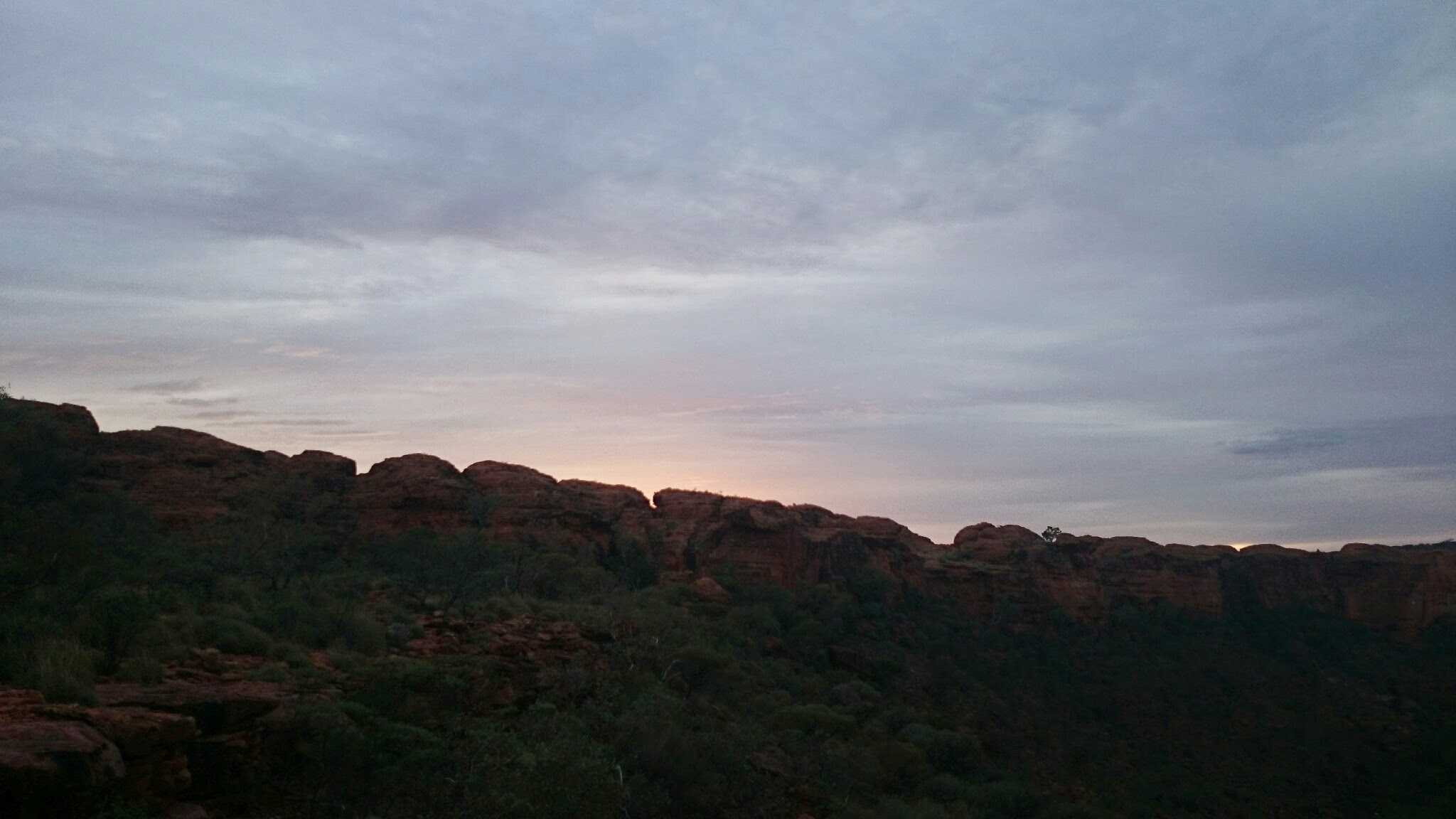 역시나 킹스캐년에서의 일출을 보기 위해 일찍 서두르기는 했지만 하늘에 구름이 잔뜩 끼어 뜨는 해를 보는 것은 수포로 돌아갔다. 킹스캐년을 오르고 내리며 크렉의 리드하에 멋진 포토 존을 찾아 다니며 사진을 찍었고, 바위 산을 오르는 야생 왈라비(캥거루과의 작은 캥거루)를 보기도 했다.