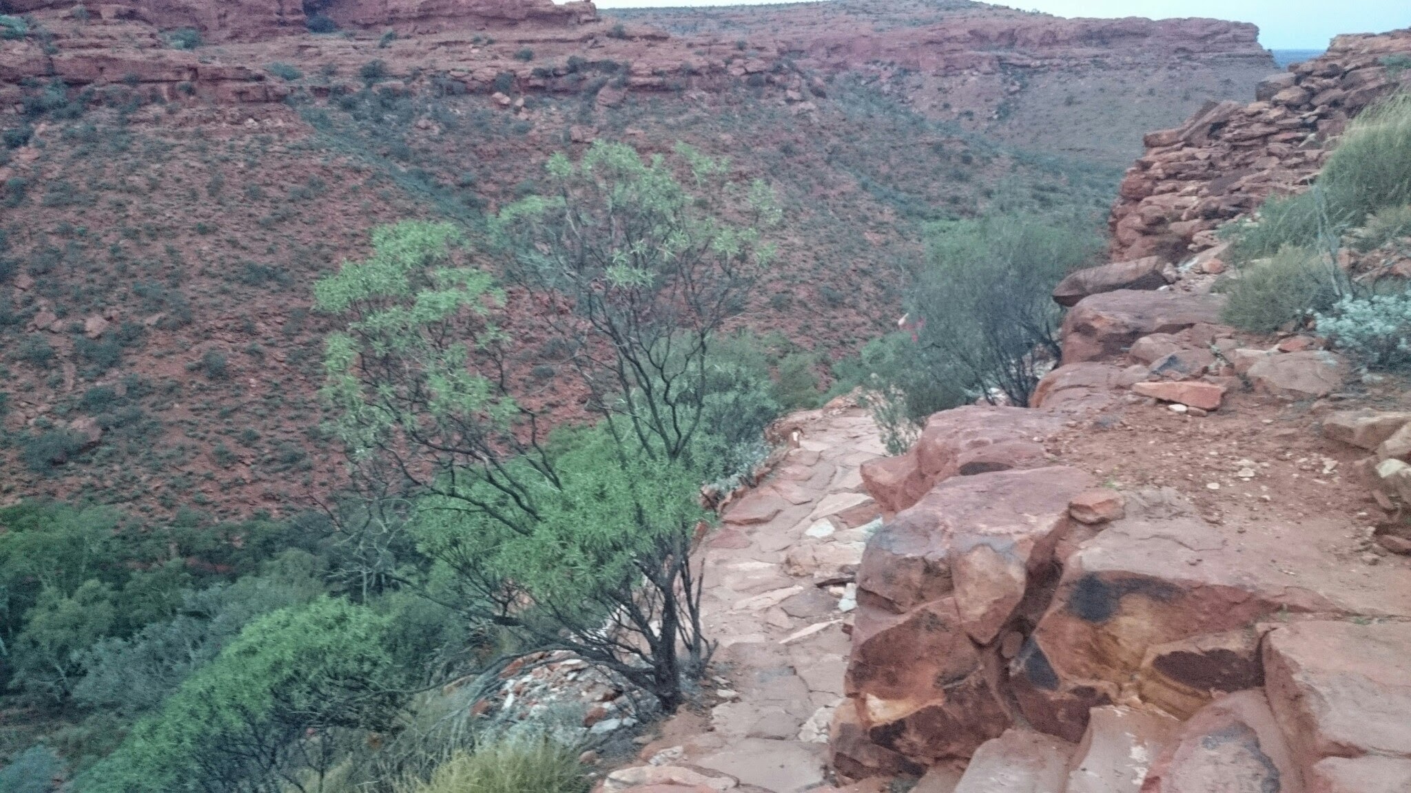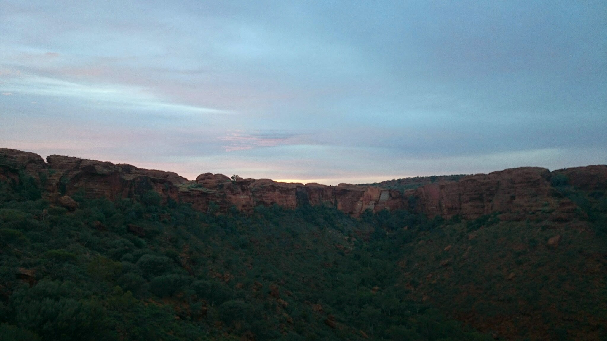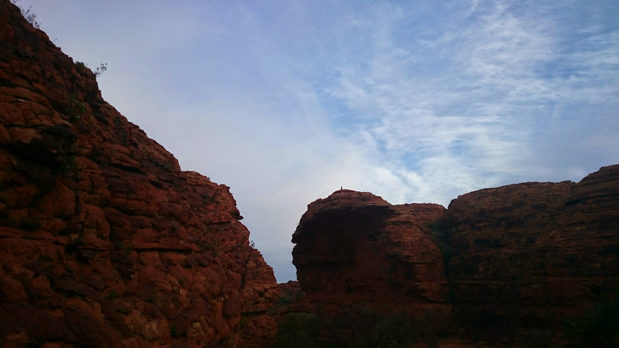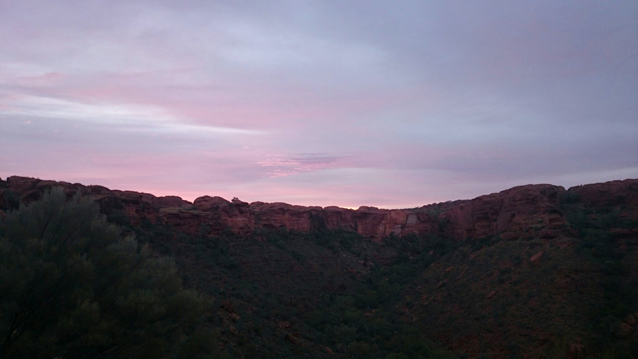 역시나 킹스캐년에서의 일출을 보기 위해 일찍 서두르기는 했지만 하늘에 구름이 잔뜩 끼어 뜨는 해를 보는 것은 수포로 돌아갔다. 킹스캐년을 오르고 내리며 크렉의 리드하에 멋진 포토 존을 찾아 다니며 사진을 찍었고, 바위 산을 오르는 야생 왈라비(캥거루과의 작은 캥거루)를 보기도 했다.