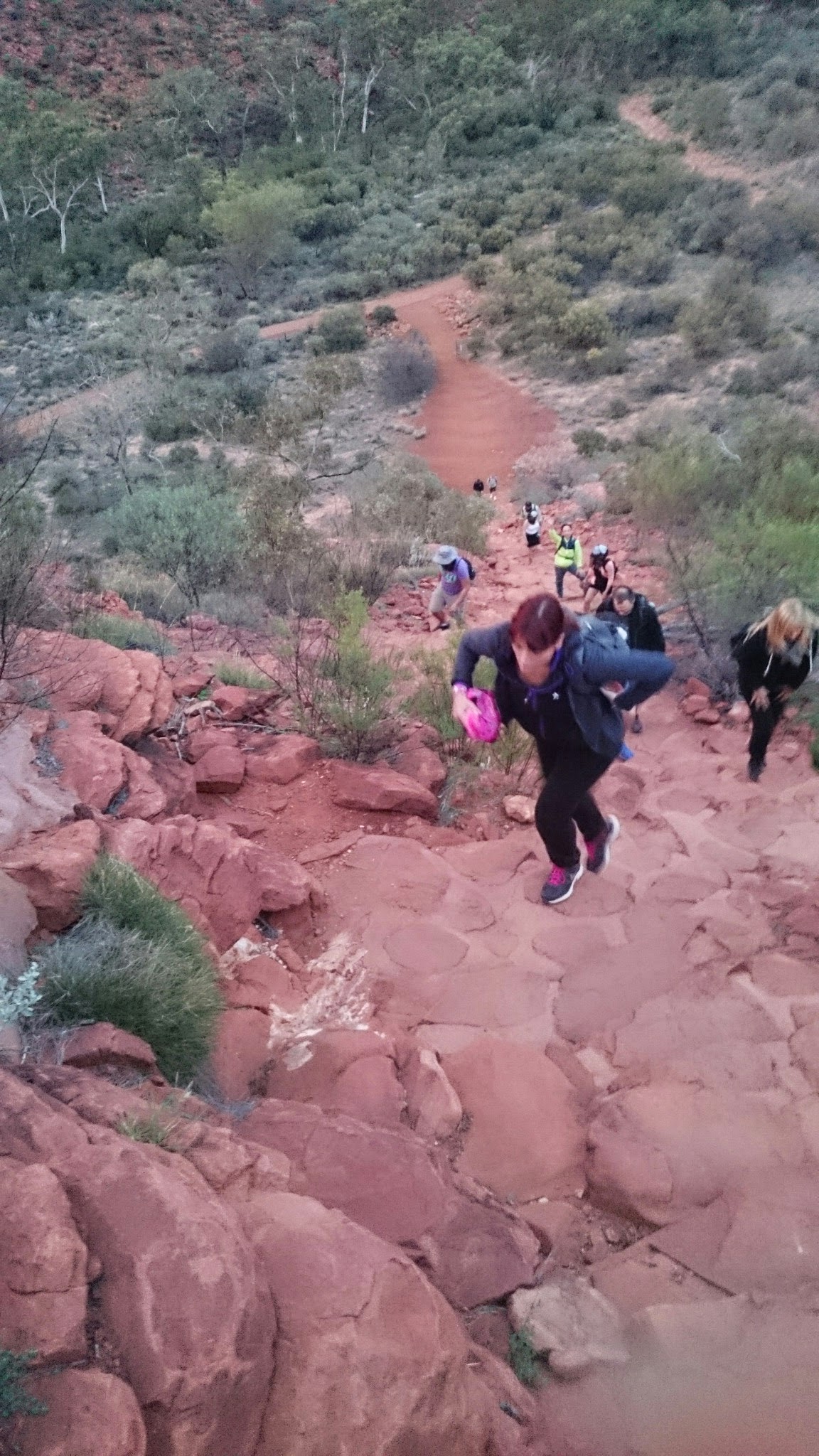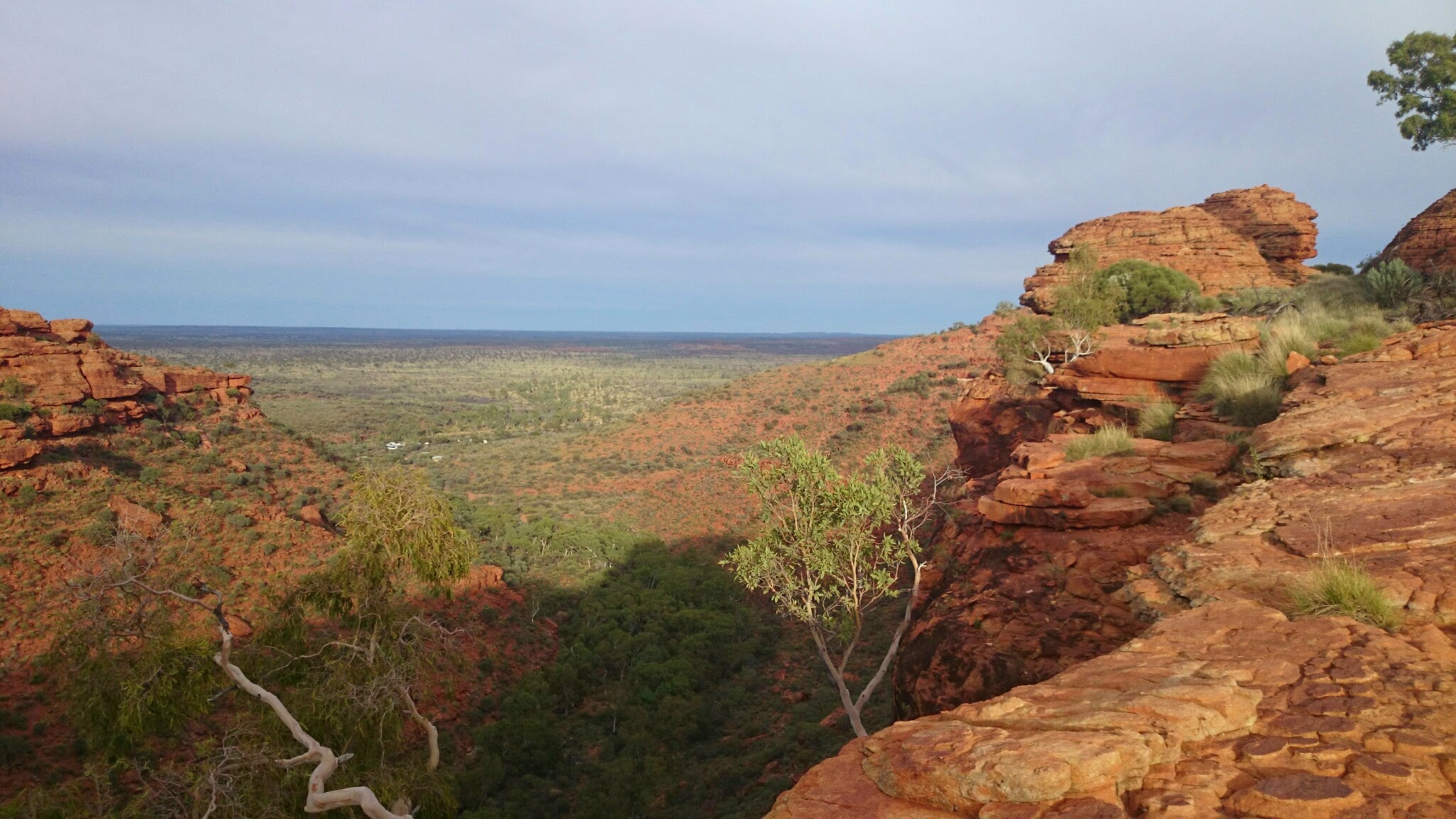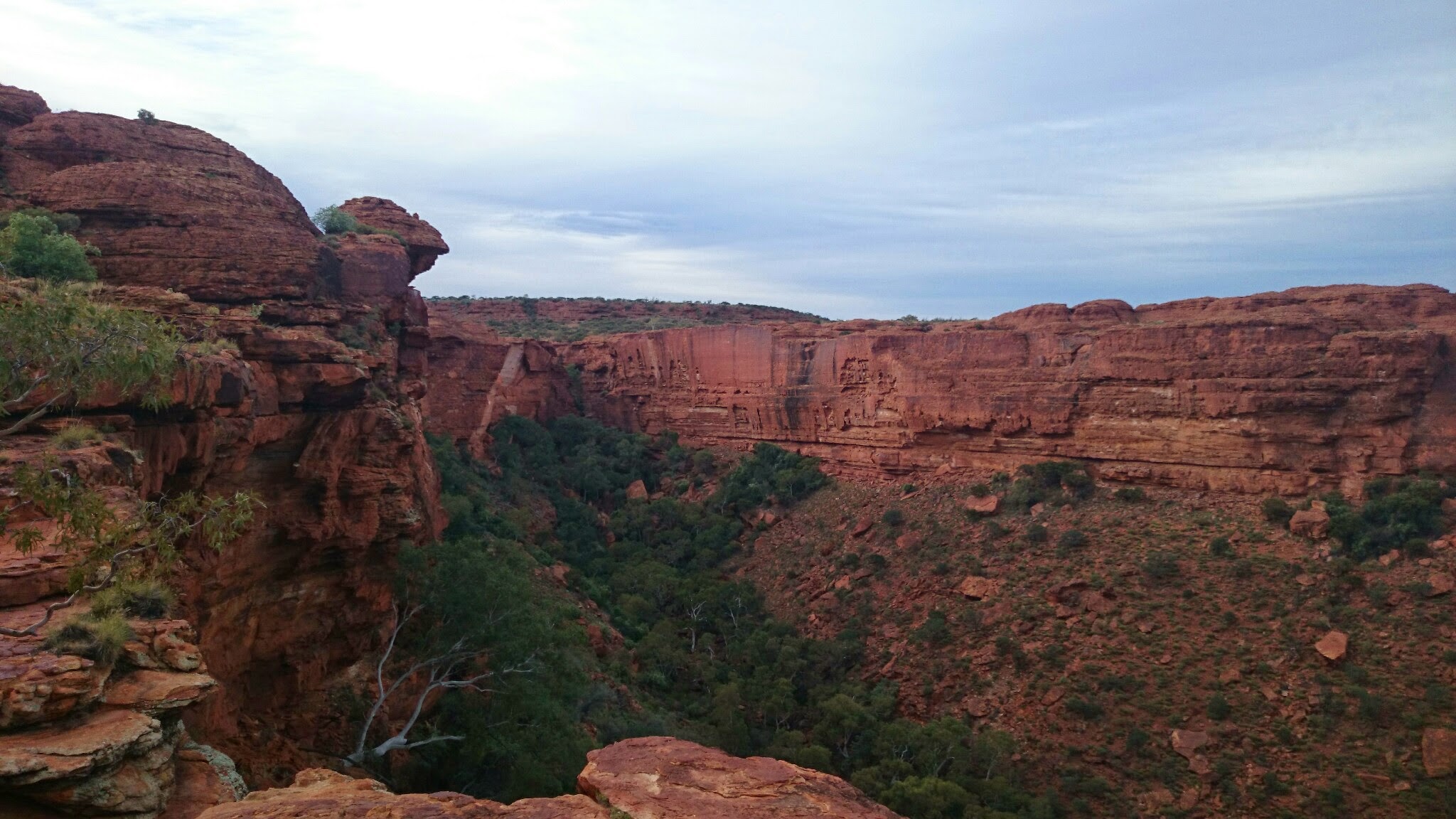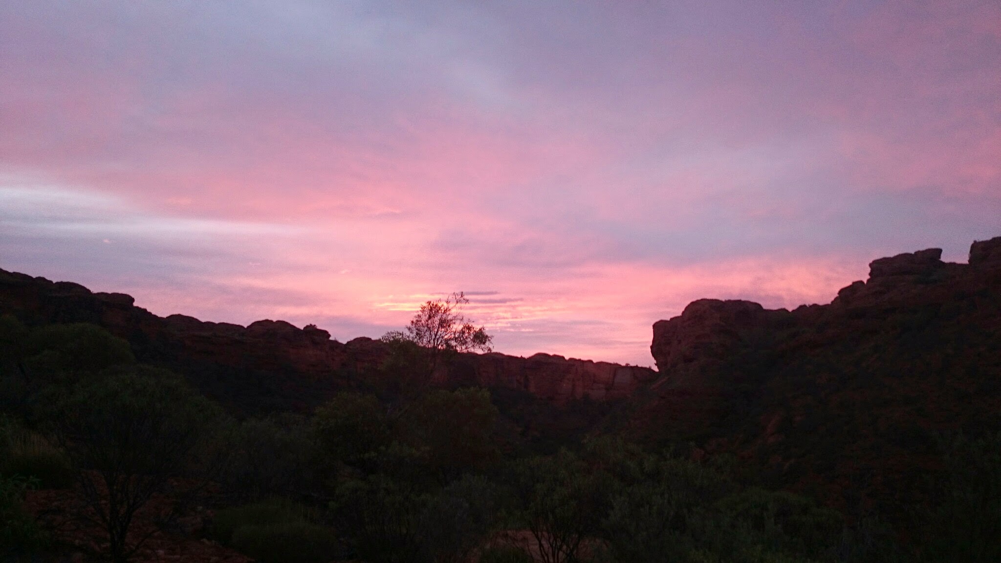 역시나 킹스캐년에서의 일출을 보기 위해 일찍 서두르기는 했지만 하늘에 구름이 잔뜩 끼어 뜨는 해를 보는 것은 수포로 돌아갔다. 킹스캐년을 오르고 내리며 크렉의 리드하에 멋진 포토 존을 찾아 다니며 사진을 찍었고, 바위 산을 오르는 야생 왈라비(캥거루과의 작은 캥거루)를 보기도 했다.