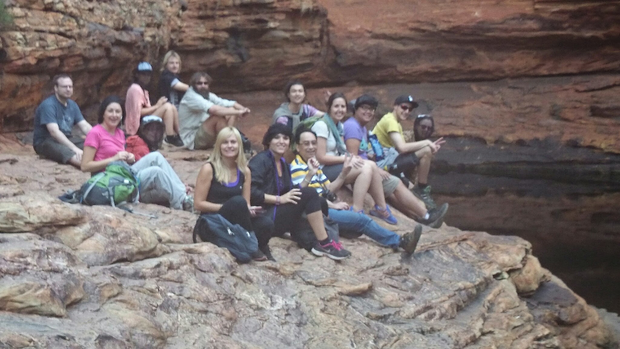 빗물이 고여 만든 킹스캐년 안쪽에 바위들 틈에 있는 큰 호수에서 쿠키를 먹으며 휴식을 취한 뒤 단체 사진을 찍고 가파른 절벽을 배경으로 마지막 기념 사진을 찍었다.